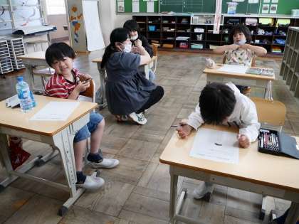 3組の様子。 熱中症防止キャラクターを考えていました。