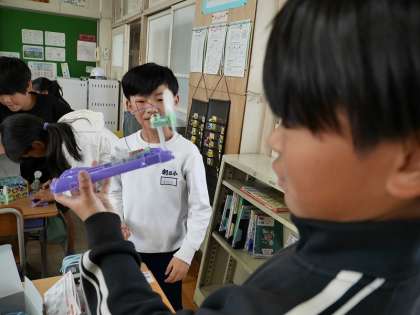 「電気のはたらき」電気がうまく流れるとファンが回ります。うまく作れたかな?