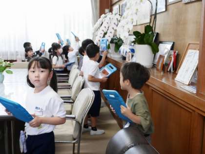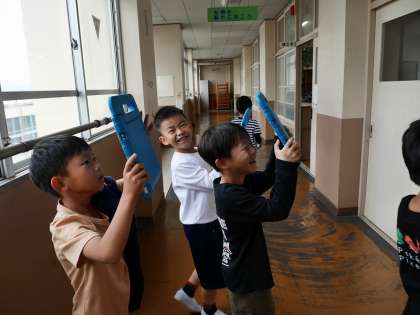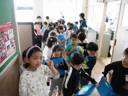 学習用タブレットの使い方を学んだので、今日は学校探検で訪れた場所の写真を撮りました。