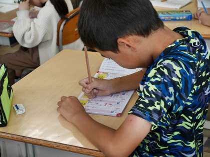 指で確かめながら新出漢字を覚えていました。