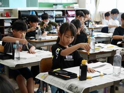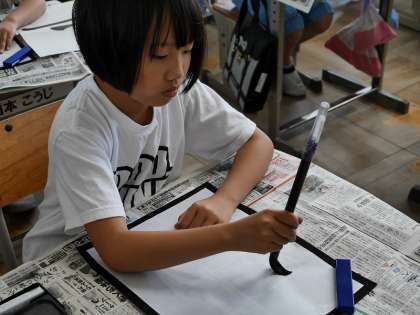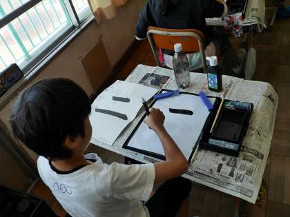 「二」を書きました。始筆、終筆を意識して書けるようになりましたね。