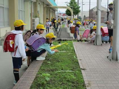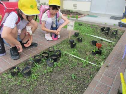 3年生が植えたヒマワリが順調に成長しています。