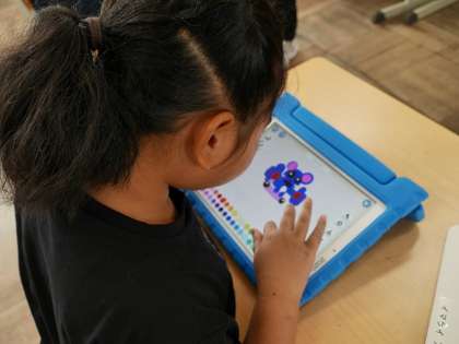学習用タブレットやプリントを使って個別に学習しています。