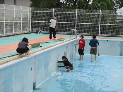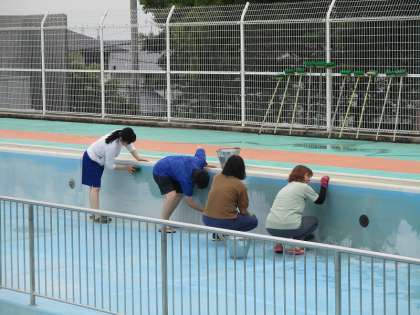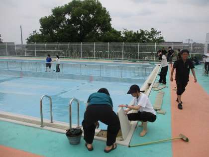 また、破損個所等の危険がないかの確認も、水泳指導前のこの時に念入りに行いました。