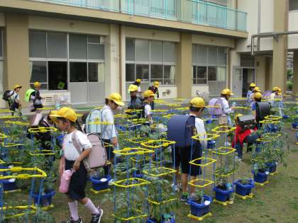 雨でも晴れでも子どもたちは一生懸命水をやっています。