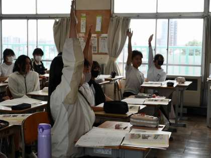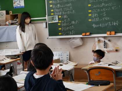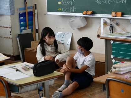 教室の前で役割演技。自転車で転んで泣いている子がいたらあなたはどう声をかけますか?