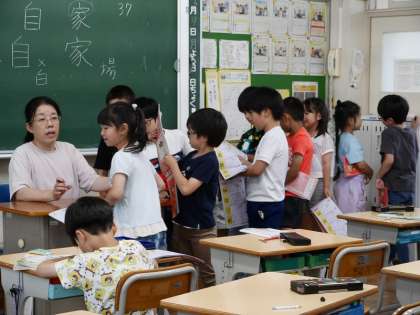 新出漢字の練習です。 漢字ドリルが書けたら先生に見てもらいます。