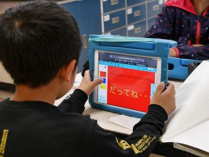 学習用タブレットの「発表ノート」はプレゼンテーションに使ったり、自分の考えを教師や友達と共有したりすることができます。