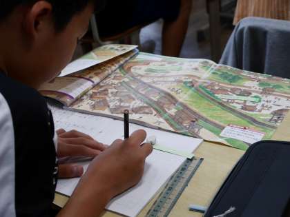 縄文時代、弥生時代の村の図を見くらべて、どんな違いがあるのかを探していました。