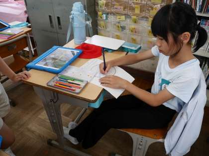 野菜の観察記録を書いていました。