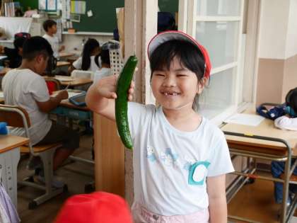 野菜の様子を見に行ったら、キュウリが大きく育っていたそうです。
