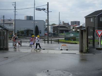 子どもたちが登校するころに雨が上がりました。