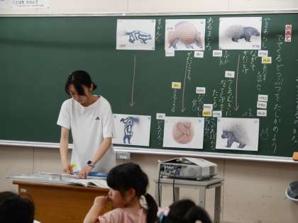 「どうやってみをまもるのかな」説明文の学習です。ヤマアラシ、アルマジロ、スカンクの独特の身の守り方を、文章から読み取ります。