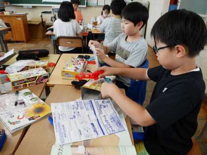 説明書と一生懸命にらめっこする子、友達が作る様子を観察する子、近くの友達と相談しながら作る子…みんな一生懸命です。