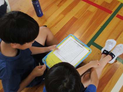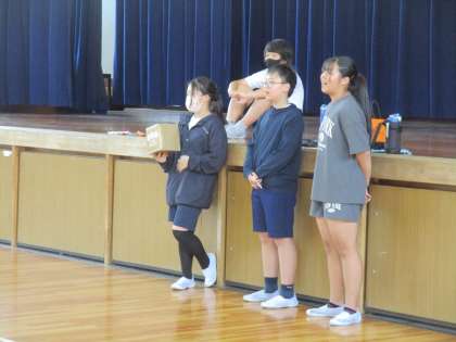 朝の時間に6年生が1年生とビンゴをして楽しんでいました。