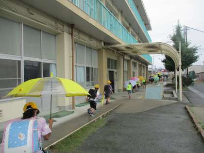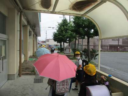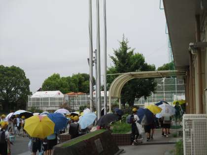 傘さしの登下校は、周りをよく見て交通安全に気を付けて歩いてくださいね。
