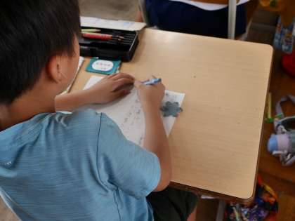「こんなことしているよ」家でしていることを順序だてて書く学習です。書きたいことの構成を考えていました。