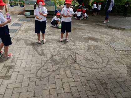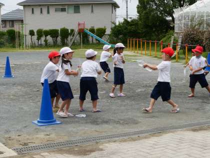 「なつよなかよし」水遊びの種類ごとにグループになって遊びました。