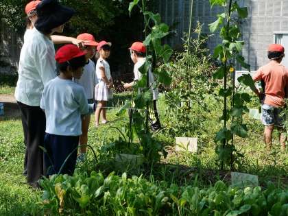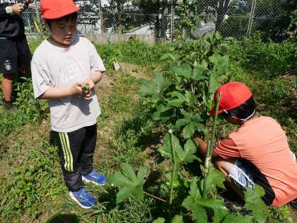 水をやったり実った野菜を収穫をしたり。