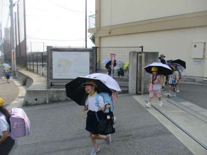 本日は教員の付き添い、保護者の皆様、見守りボランティアの皆様の見守りで下校しました。
