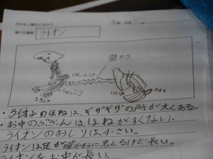 骨や筋肉につい学んだ後に、自分が興味のある動物の骨格について調べています。