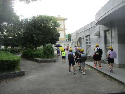 暑いので体育館で行います。