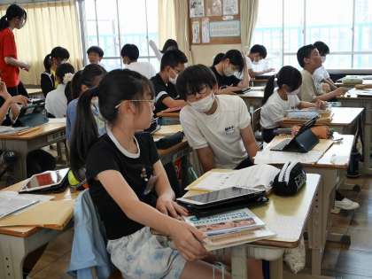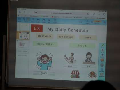 週末にしたことや感想を学習用タブレットの発表ノートを使って発表しました。