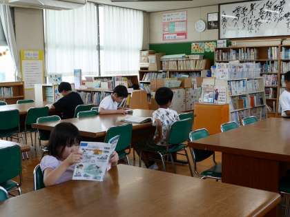 子どもたちは冷房の効く体育館や図書館、教室で過ごしています。