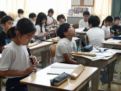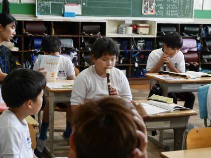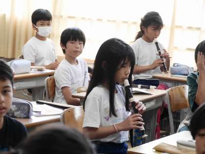「月夜」をリコーダーで吹きました。 高い音がうまく出せたかな?