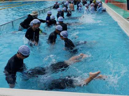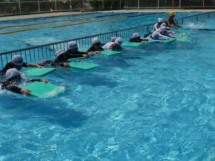 水泳授業も残り少なくなりました。 子どもたちの泳いだりもぐったりする様子も上達を感じます。