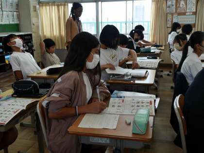 5年生で習った動詞と6年生で習った動詞を使ってビンゴゲームをしました。