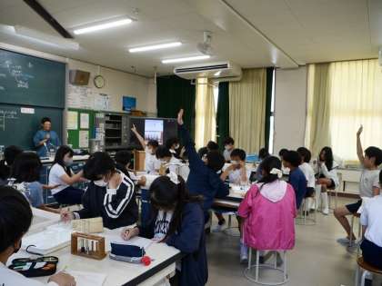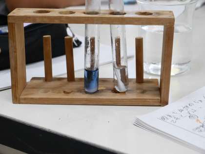 6年理科 公開日 2025/07/14 更新日 2025/07/14 各学年から だ液のはたらきについて学びました。 でんぷん溶液にだ液を付けた綿棒と水を付けた綿棒を入れ、ヨウ素液の反応を確かめました。 6年