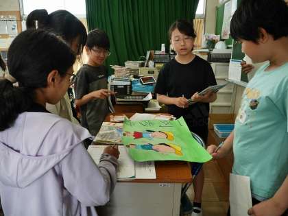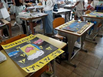 完成した交通安全ポスターをお互いに鑑賞して、コメントを書いていました。