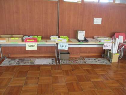 玄関から入り、会議室の学年の表示の場所にご提出ください。