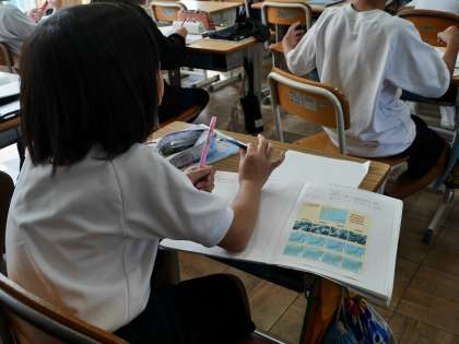 台風の進路によって天気がどのように変わっていくか、予想して話し合っていました。