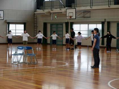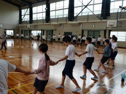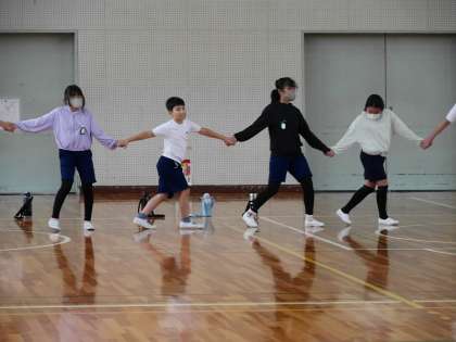 学年でキャンプファイヤーのスタンツの練習をしました。