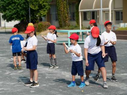空気の性質の学習です。 空気鉄砲でスポンジ球を飛ばしました。