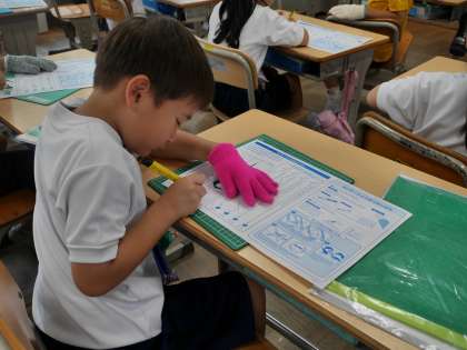 今日は練習用紙の様々な形に添って切る練習をしていました。