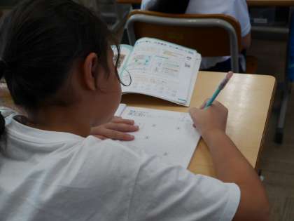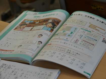 たし算とひき算の筆算を学習していました。 けたをそろえて筆算の式が書けたかな?