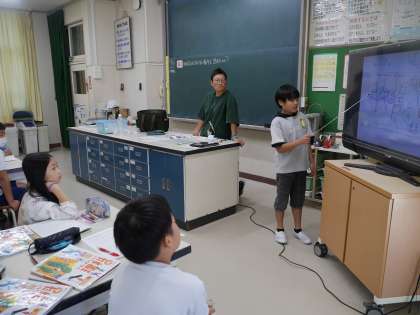 雨水がどのようなところに流れていくのかについて、自分の考えを図に描いて説明しました。