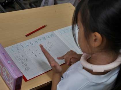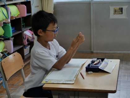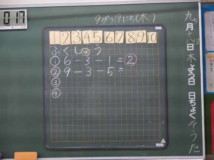 三つの数のひき算の復習をしていました。 指も使いながら一生懸命考えていました。