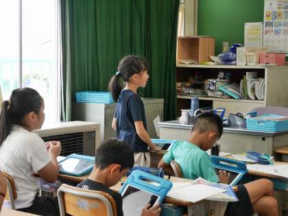 学校や地域が行っている防災対策にはどんなことがあるか、みんなで知っていることや調べたことを出し合っていました。