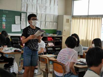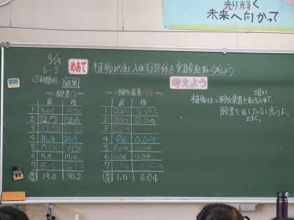 植物の葉が出し入れする気体の調査結果をもとに、どのようなことがいえるのかを話し合いました。