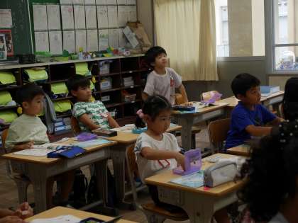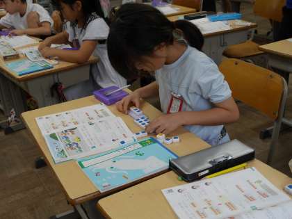 数図ブロックを使ってくり上がりの考え方を学んでいました。