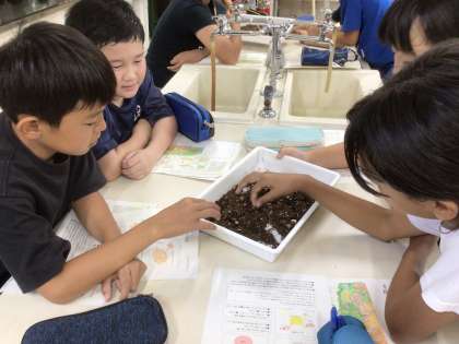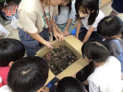 「畑が喜ぶ生ゴミマジック」と題した出前授業がありました。子どもたちは生ゴミが肥料に変わる方法をとても興味深く学んでいました。来週から各クラスで給食の残飯を用いて取り組みたいと思います。