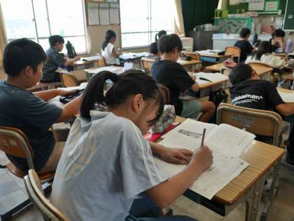「せっちゃくざいの今と昔」説明文の段落の内容を読み取って、ワークシートに書き込んでいました。