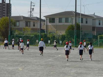リレーの練習をしていました。