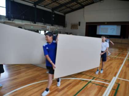 5年総合 公開日 2025/10/03 更新日 2025/10/03 各学年から 中消防署逢妻分署と豊田市防災対策課から講師さんをお招きして、「ミライにつなぐ防火・防災授業」を実施しました。 実際に避難所設営を体験し、段ボールパーティションの設置の仕方をマスターしました。 5年