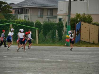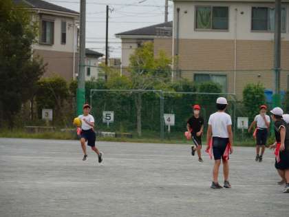 タグラグビーを行いました。 ラグビーボールの受け渡しはうまくできたかな?