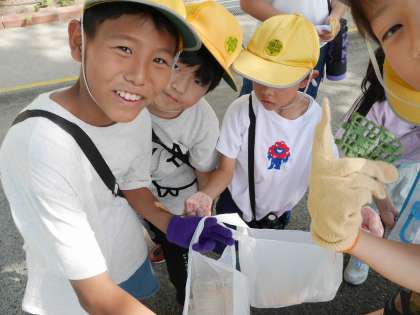 教室に戻り、やってみてわかったことを共有したり拾ったごみを分別したりして学習を深めます。
